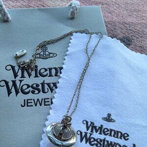 New Silver Saturn Glass chain Orb Choker Necklace Charm
