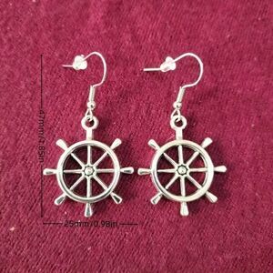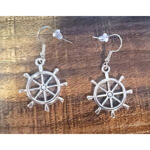 New Silver Ship Rudder Dangle Earrings .