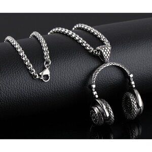 New Silver Stainless Steel Headphone Pendant Necklace for Men | DJ Music Gift