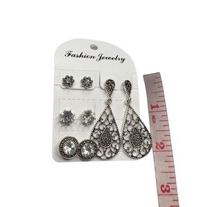 New Silver Tone 4 Pair Pierced Earring Set Rhinestone Stud & Dangle