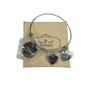 New Silver Tone Love You Mom Charm Bangle Bracelet. In new condition and still has the protective film on it. Comes with a gift box. Adjustable band that you can squeeze or pull to get the bracelet on. Comes with a little card that reads “It takes a special kind of lady to put up with me. Thank you mom. Love you to infinity”
