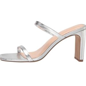 New! Silver heels open square toe 2 strap block heel sandals slip on size 7.5