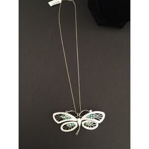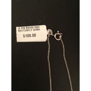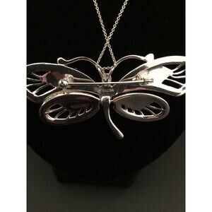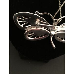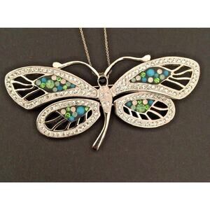 New Silvertone Butterfly Pendant Brooch Necklace on Silvertone Chain 18"