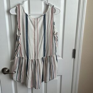 New Sim and Sam Peplum Tank Top Striped Sleeveless Casual Cute Top Size M
