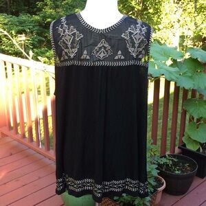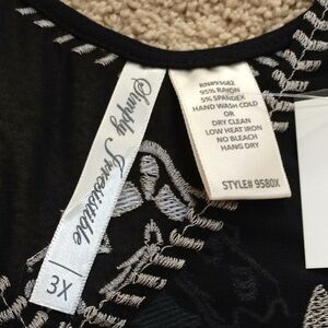 Simply Irresistible 3X Black embroidered blouse, sheer at top.