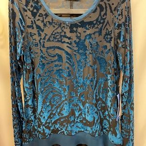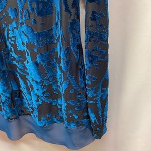 Brand New Aqua Blue Shear Dress Top with Velvet Design, applique design