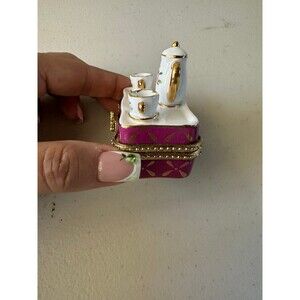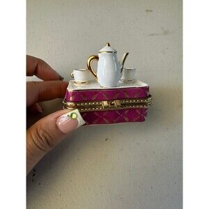 New Siu Ming Pink Tea Cup Porcelain Jewelry Keepsake Hinged Trinket Box