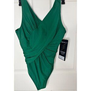 New Size 12 Miraclesuit Womens Green Oceanus One-Piece Swimsuit Draped Slimming