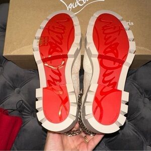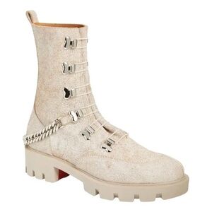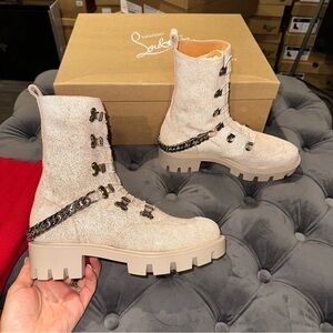 New in box. Women’s size 35.5. Christian Louboutin Horse Guarda Combat Boot. In the colors craie/silver. Originally $1,395.