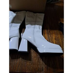 New, New Worn, No Tags Attached (Been In my Closet for a Couple Years So Might Have Minor Scratches) Women's Label Size 42 (I Believe That They Fit Like An 11- But Please Verify Fitment by Utilizing Measurements Below) White Long Side Zip Chunky Heel Boots Go Go Boots