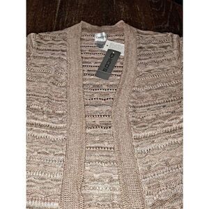 New With Tags Attached Chicos Size 0 Which is Women's US Size 4 Pink and Neutral Marble Jossi Short Sleeve Open Front Loose Knit Sweater Vest Cardigan Outter Shirt- Tan and Pink