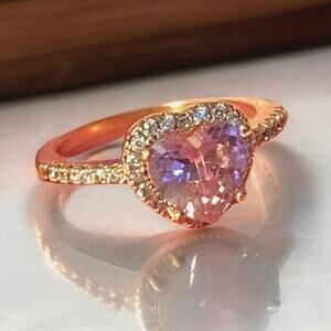 New Size 7 Pink Heart Shaped Ring Gold Clear Whiteโ Cubic Zirconia Love