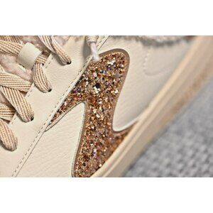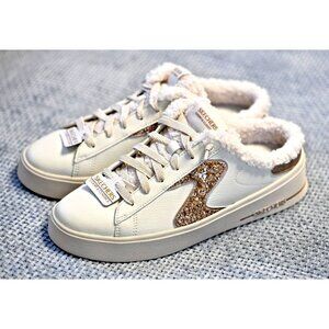 Duraleather, glitter and sherpa open back hidden wedge lace-up