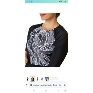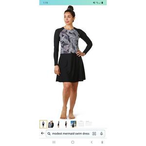 New Size 8 Modest Mermaid Monochrome Modest Swim Dress SPF50+ Black White NWOT