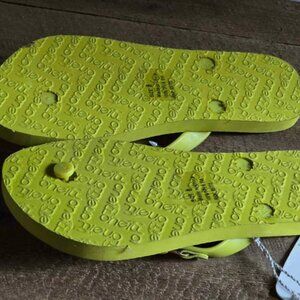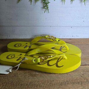 New Size 8 O'neill Yellow & Gold Tone Chain Flip Flop Sandals
