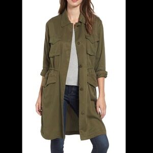 New with tags. Women’s BB Dakota Averie Drawstring Waist Army Green Coat. Originally $145.