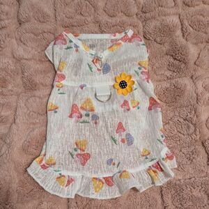 Adorable dog dress featuring a playful mushroom print. Size M is roughly for a 10 lb pet.