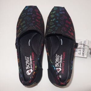 New Skechers BOBS Bone & Collar Black Dog Print Plush Slip On Shoe Women's 5