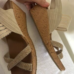 Pearl, Rhinestone and stretch mesh upper in a wedge heeled strappy slide comfort sandal with stitching accents and Luxe Foam footbed.