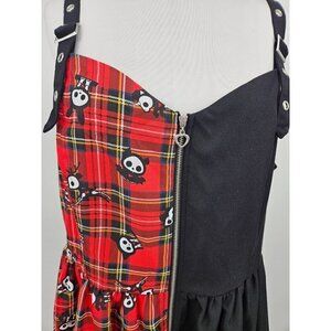New Skelanimals Plaid Split Dress Womens Plus 2/18-20 2X Black Red Mini Zip