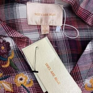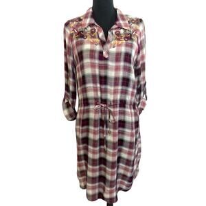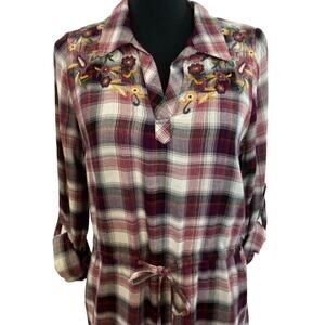 New Skies Are Blue Red Plaid Embroidered Floral Shirt Dress Small