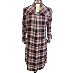 Details: Burgundy plaid shirt dress with beautiful floral embroidery on the top. Tie