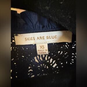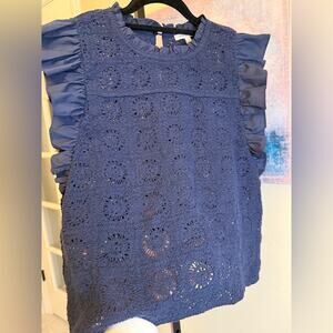 New Skies are Blue Crochet Flutter Sleeve Top Women’s XS Navy Ruffles