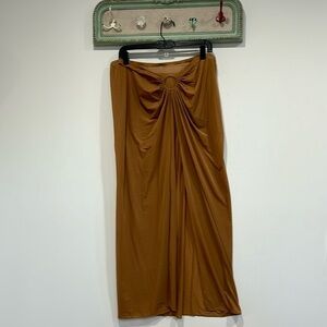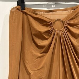 New Skims Ring Mesh sheer sarong slit midi skirt swim cover up almond plus 2X