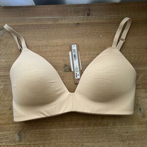 Experience comfort and style with this elegant cream bra. Perfect for everyday wear. This skims bra is new but I did take tag off to delicately wash it . It had some warehouse dust on it. All gone now. So in new condition and adjustable straps