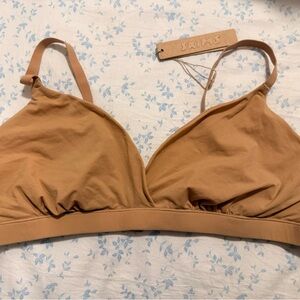 Experience comfort and style with this elegant cream bra. Perfect for everyday wear. This skims bra is new but I did take tag off to delicately wash it . It had some warehouse dust on it. All gone now. So in new condition and adjustable straps