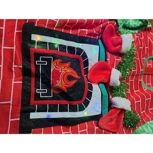 New With Tags Attached Men's Size Small 34/36 but Could be Unisex or Worn by Women Dec 25 Christmas Cheer Holiday Cheer Union Suit- Fill My Stocking. Red and White Brick Back Ground with Green and White Snowflake Fair Isle Sleeves- Embroidered Fireplace on the Front with Stockings and Tinsel. Ugly Christmas/ Cute Christmas Jumpsuit with Rear Zipper- Lights Up with Control in Pocket.