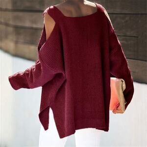 New Small Cold Shoulder, Oversized, Square Neck, Chunky, Batwing Tunic Sweater