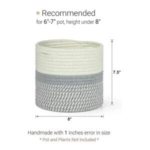 New Small Decorative Woven Rope Plant Basket Gray & White