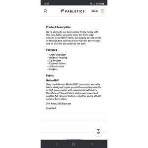 New With Tags Attached Women's Size Small Fabletics Black and Willow Bark Motion365 Trinity High Waist Utility Leggings- Chafe Resistant, Moisture-Wicking, External Pockets, Four-Way Stretch- Athletic Casual Athleisure Loungewear Activewear Yoga Running Training Gym Workout