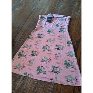 New Small Forever21 Sleeveless Mini Dress Sundress Flamingo Palm Tropical Pink