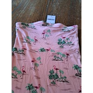 New With Tags Attached Women's Size Small Forever 21 Pink, Salmon, Green, and Brown Sleeveless Mini Dress Flamingo, Palm Tree, Tropical, Vacation Vibe, Summer Vibe Knit Sundress