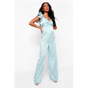 New Small Maternity Baby Blue Satin Silky Ruffle Jumpsuit Pregnancy Boy Gender