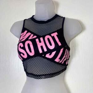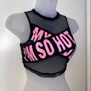 New Small Mesh I'm So Hot Pink Tape Crop Top Punk Grunge Retro Neon Black