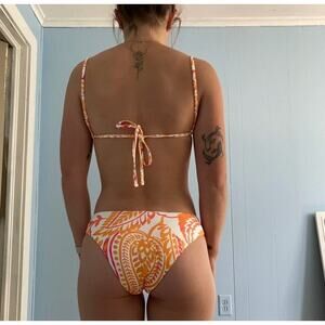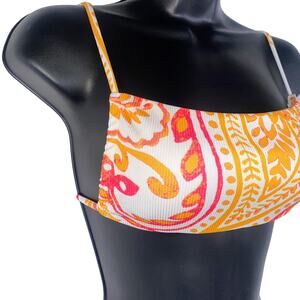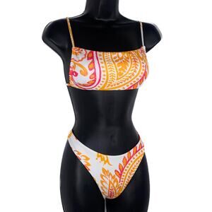 New Small Orange Pink Paisley Print Square Neck Bandeau Bikini Halter Swimsuit