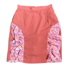 New Small Ruffle High Rise Floral Solid Peach Skirt Pink Pencil Mini Fitted