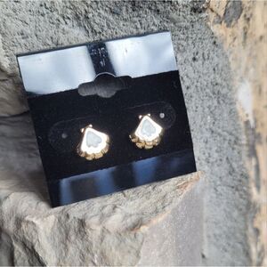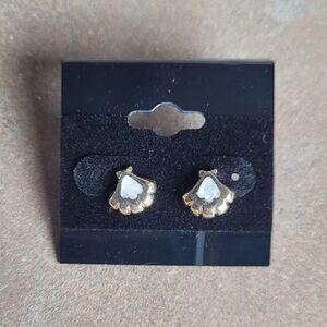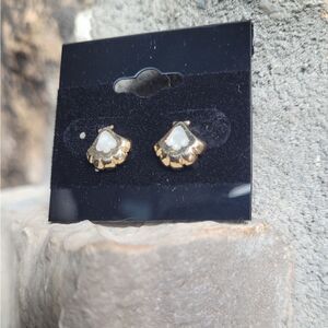 New! Small Shell Gold Stud Earrings with Pearl Inlay