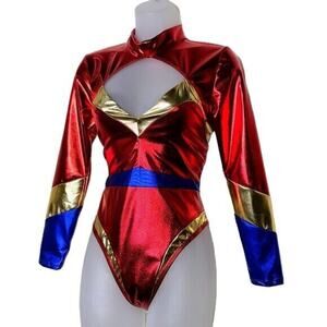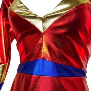 Transform into the iconic superhero with this stunning superhero costume. Perfect for Halloween or cosplay events, this bodysuit features a stretchy fabric for comfortable wear and movement. The classic red, gold, and blue color scheme captures the essence of Wonder Woman's power and strength.