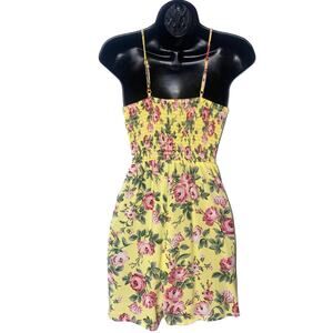 New Small Yellow Tie Front Floral Romper Adjustable Shorts Keyhole Sleeveless