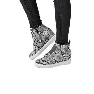 New Sneaker Boots Womens Black 7.5M Snake Print GLADY Waterproof Ankle Zip