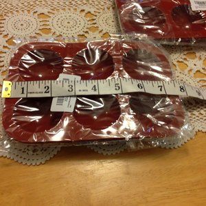 Two new packs of soap making silicone molds, each pack has two molds for total of four. Each mold tray makes six 2" soaps. The mold trays themselves are 5 1/4" x 7 1/2".