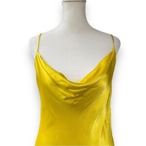 Socialite Yellow Satin Cowl Neck Sleeveless Midi Slip Dress. Size Extra Small. Slip into style with a bias woven midi dress featured in a solid hue for easy pairing in your night out looks.