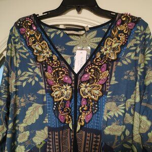 New with tag soft surrondings 3/4 sleeve amaya top size women's 1X. It is multi-colored beaded armpit to armpit 22 inches 30 inches long.
