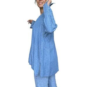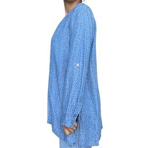 New Soft Surroundings Blue Animal Print Chambray Tunic Top Blouse Size Large