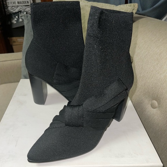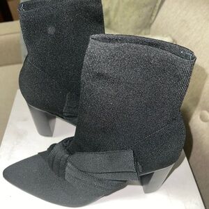 Absolutely gorgeous black boots brand new in box made by Sol sana style Liana. 4” stacked heels. Pointy toe knit uppers. These are so beautiful and lovely on!! Sz 37/7. Runs true to size. Retails $159 if you can find them - sold out!!! #solsanaboots