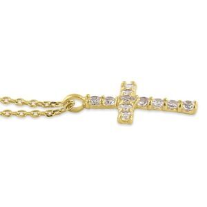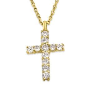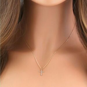 New Solid 14K Gold Cross with Clear CZ Necklace